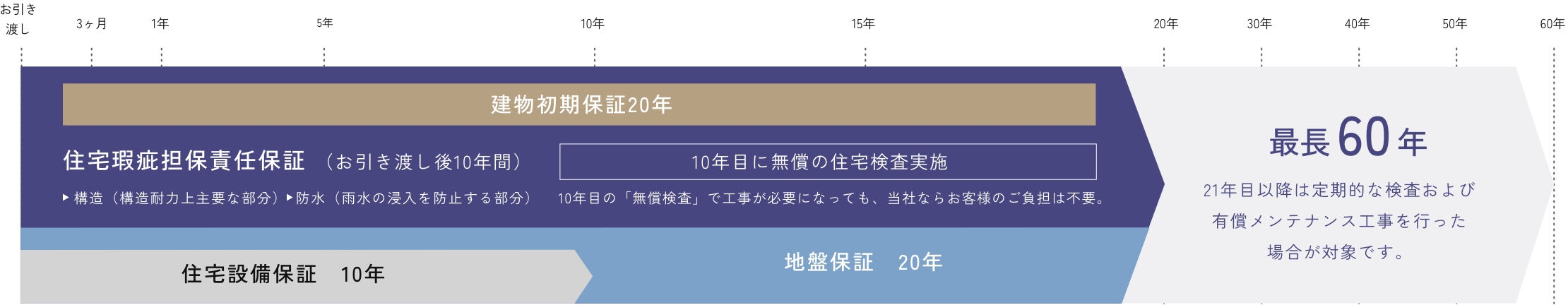 ※お引渡時期により加入している保証制度が異なります。ご入居済みのお客様で、加入している保証制度が不明な場合は担当スタッフまでご確認ください。
