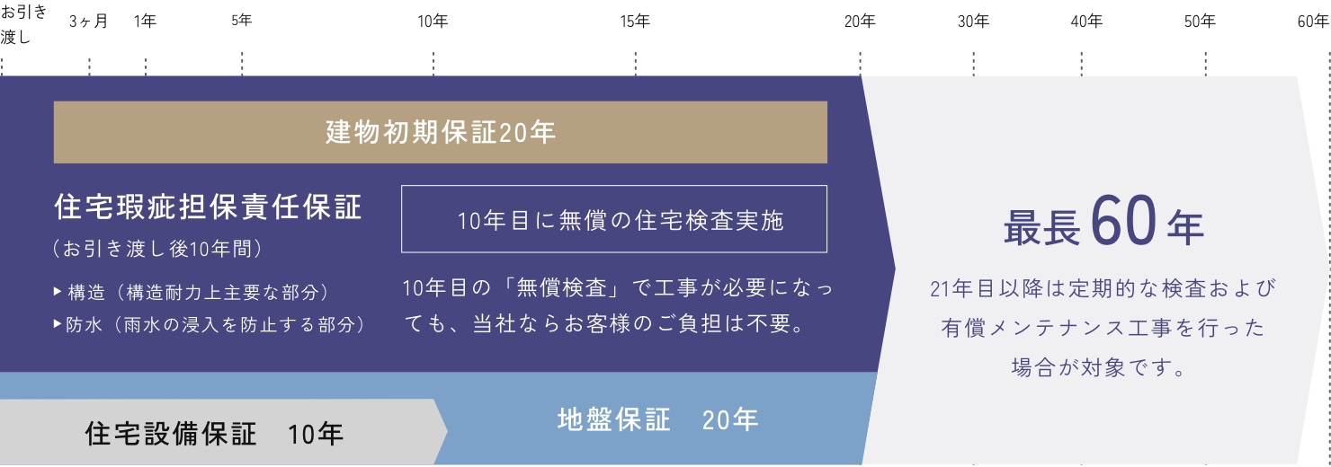 そのため、住宅会社の保証は10年間というのが一般的ですが、当社はお客さまに長期の安心をご提供するために