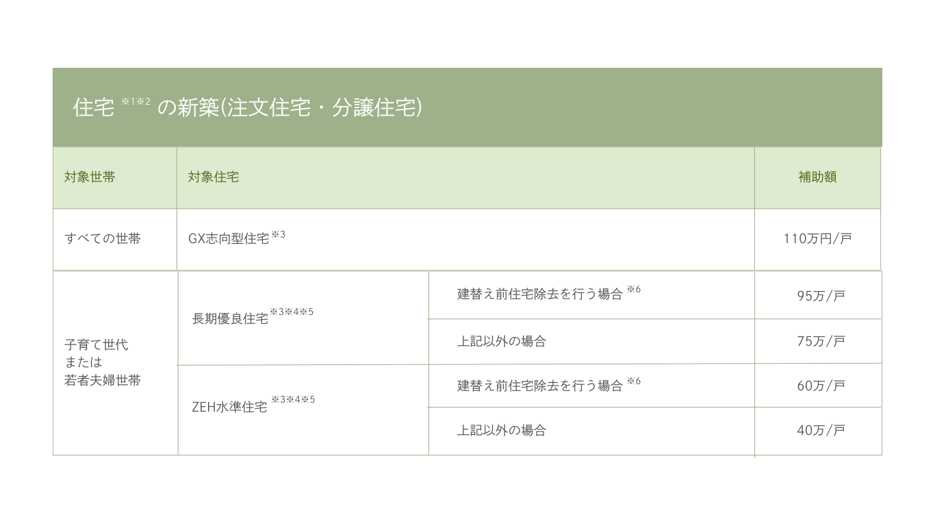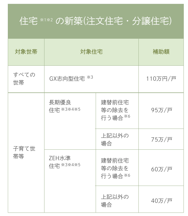 ※3:「GX志向型住宅」は環境省において実施、「長期優良住宅」及び「ZEH水準住宅」は国土交通省において実施。