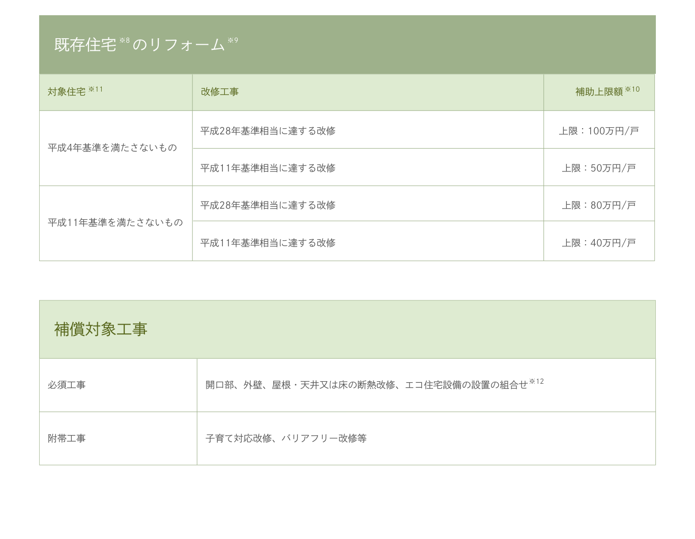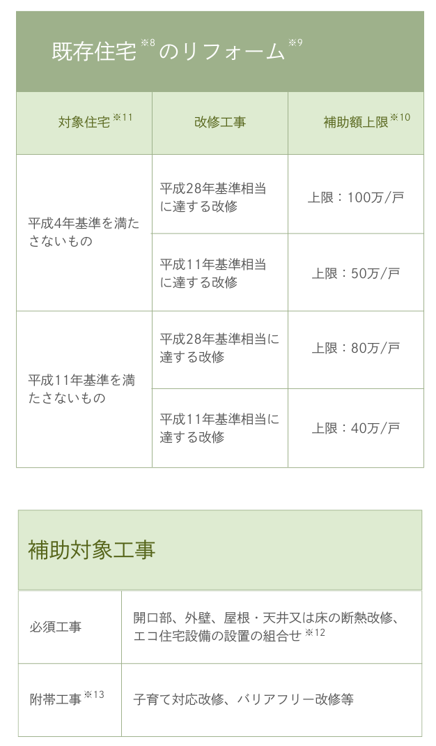 ※10:補助額はリフォーム工事の内容に応じて定める額を合算した額。