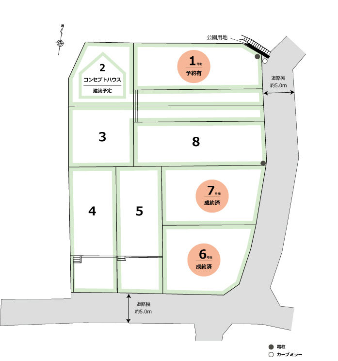 全区画、土地面積150㎡以上のゆとりある敷地