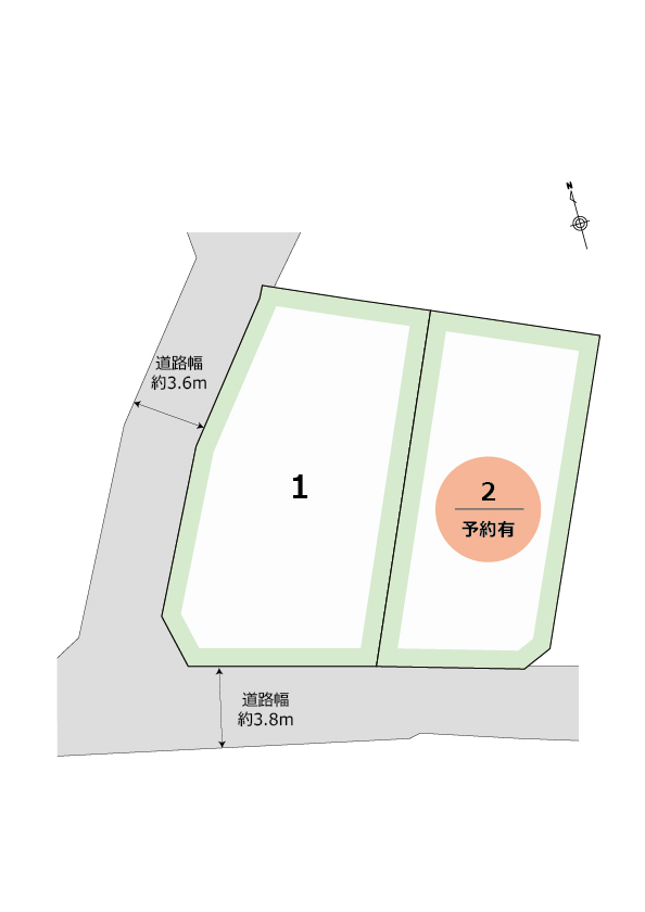 | 道路 | 公道 : 南側 約3.8m 北西側 約3.6m |