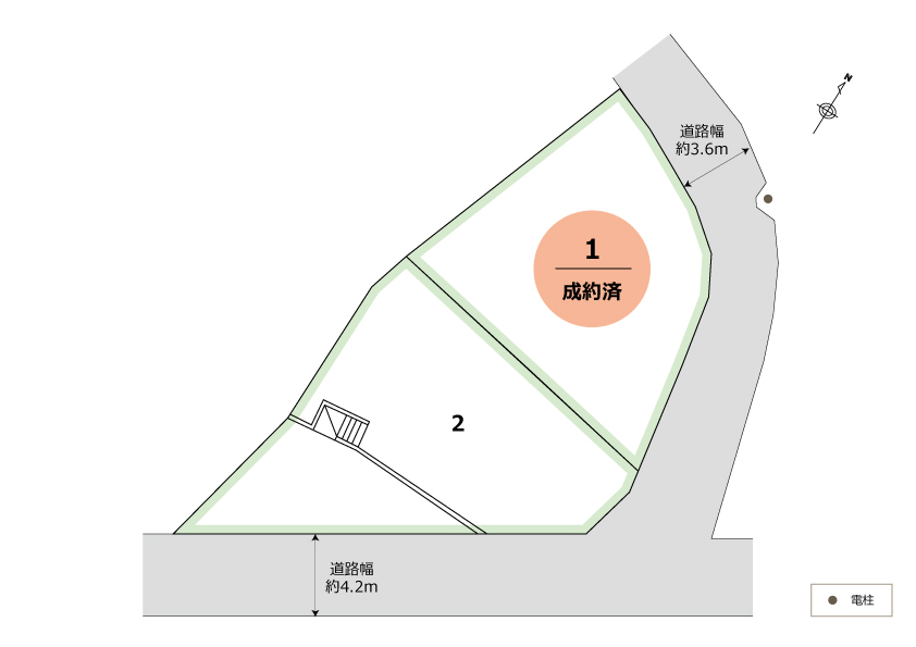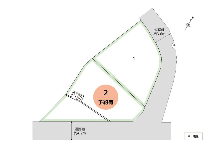 | 道路 | 公道 : 南東側 約4.2m 北東側 約3.6m |