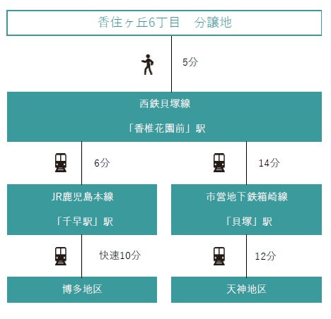 最寄り駅まで徒歩6分、香椎・千早方面へ接続することで天神・博多へのアクセスも良好