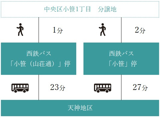 小笹バス停から約30分で博多地区、天神地区へアクセス可能