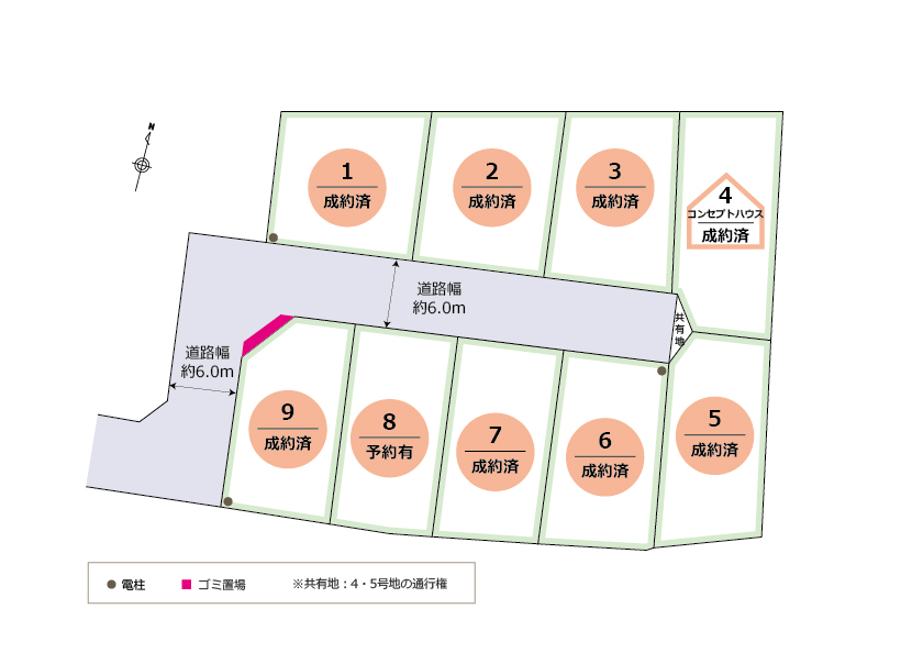 | 学校区 | ※建築条件付(地盤保証付) ※面積・価格に変更のある可能性があります ※9号地角にゴミ置き場あり |