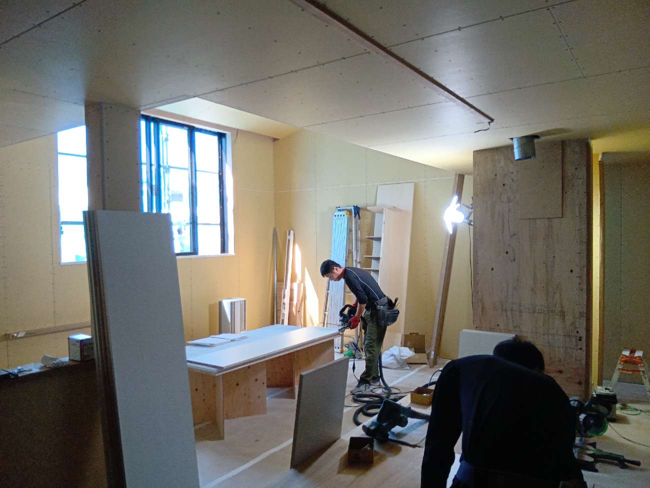 ボード張りの作業が進んでいます。