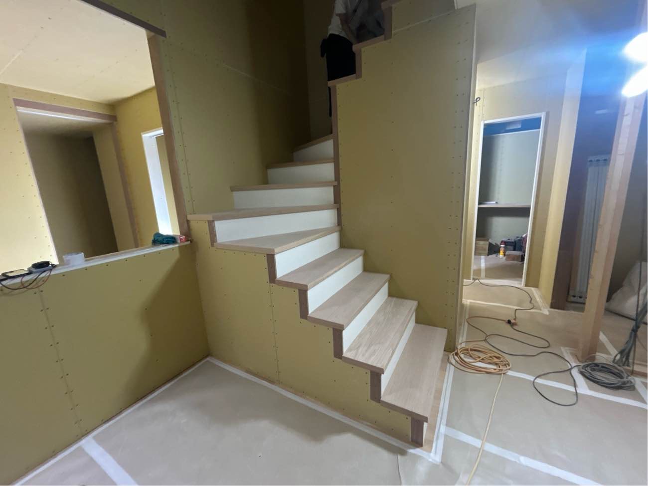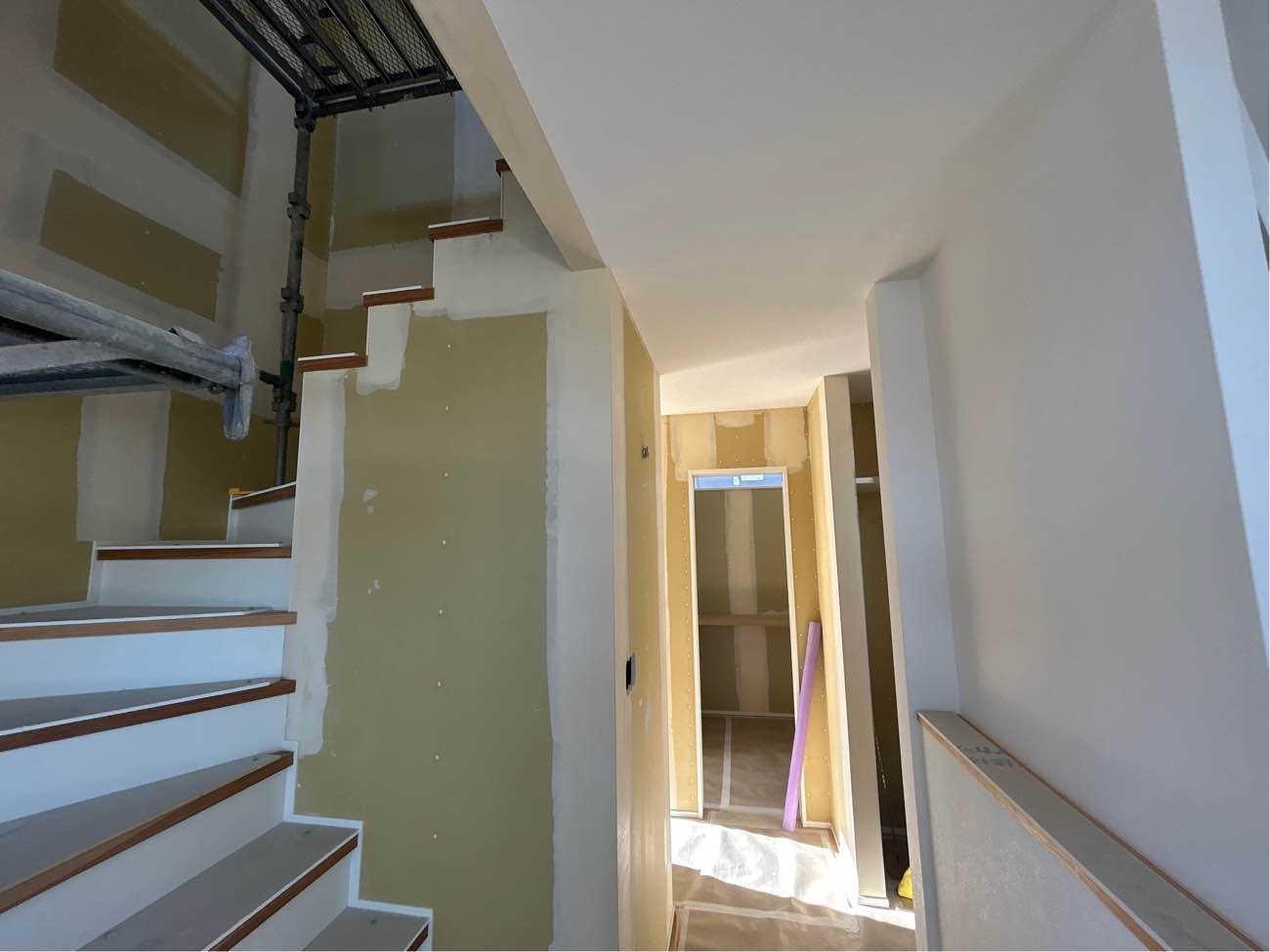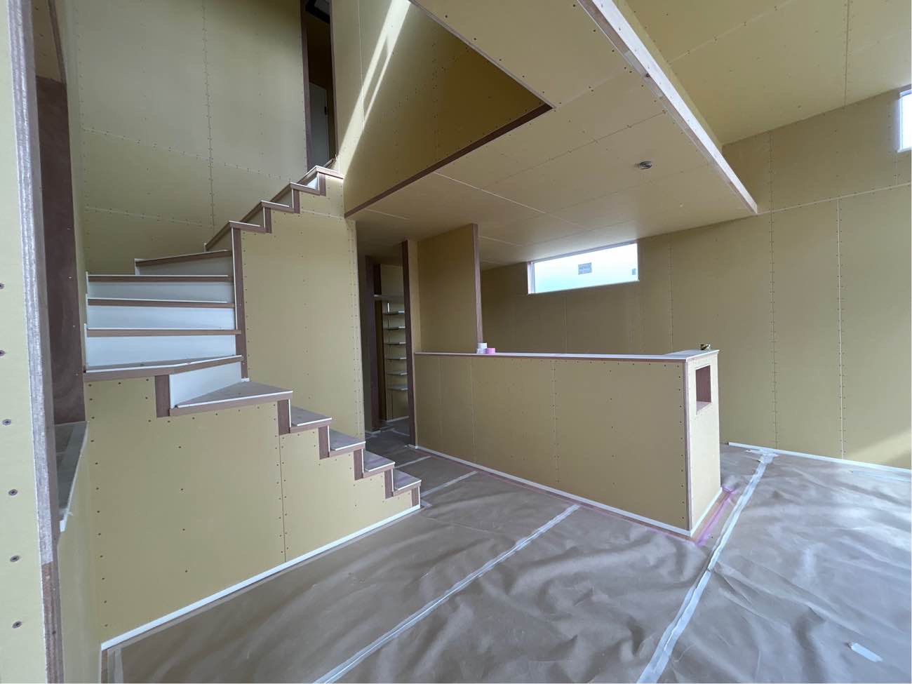 お部屋内部の仕上げが進んでいます。壁紙を貼るとお部屋の印象も変わってきます。