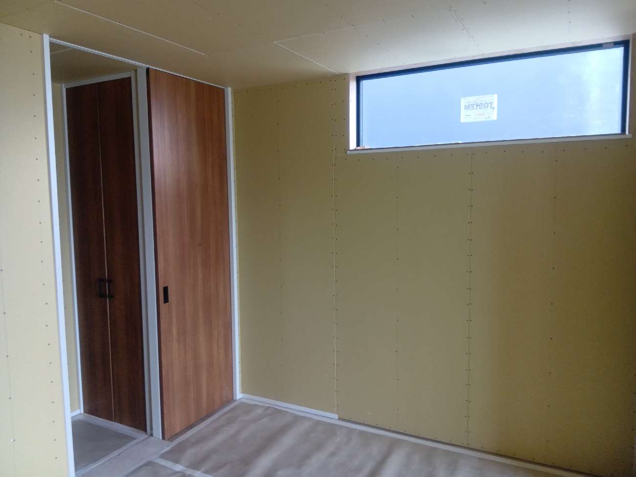 クロス工事に取り掛かりました。石膏ボードにパテ処理を施し、平滑な面をつくります。
