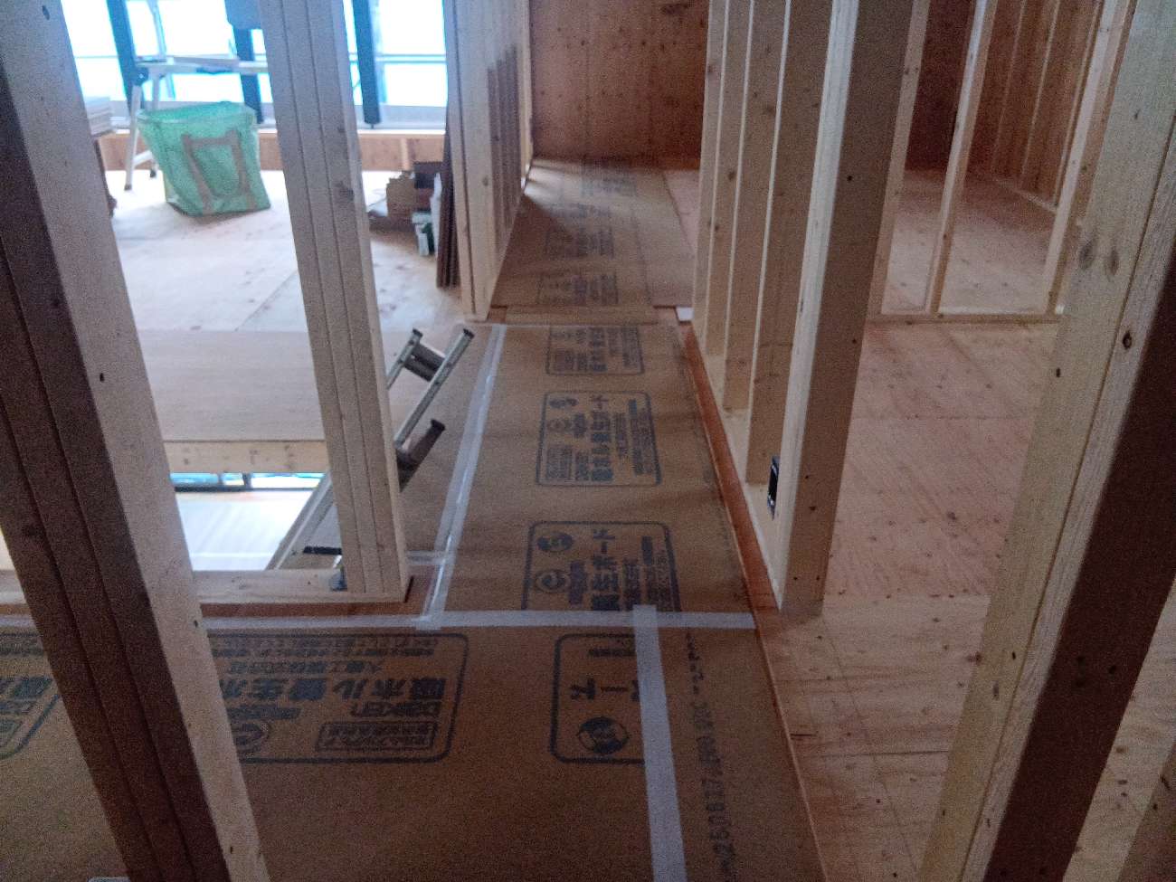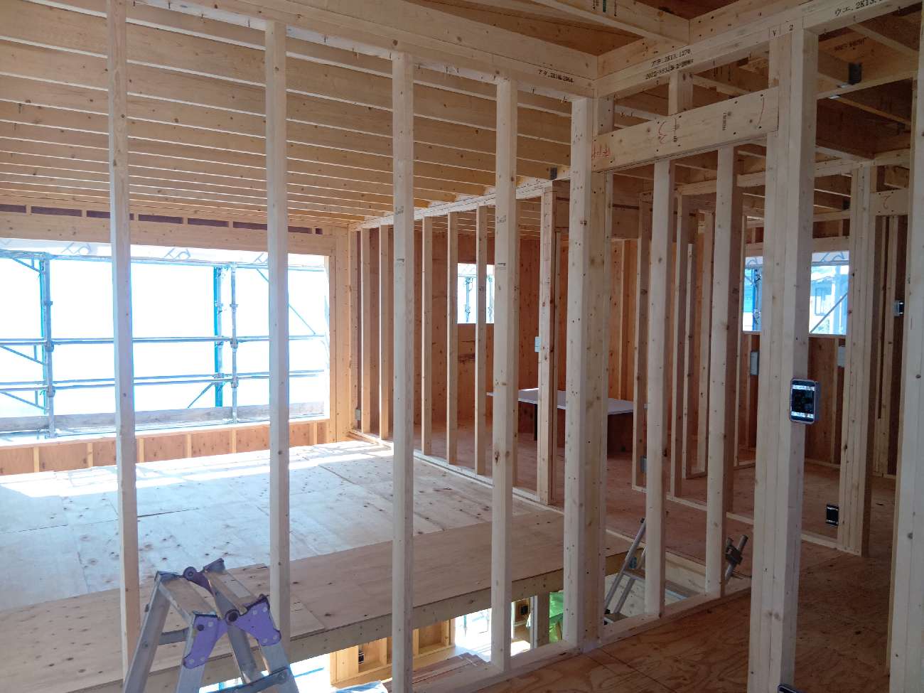 内部造作工事がはじまりました。サッシを取り付け、各所下地工事やフローリング工事へ進んでいきます。