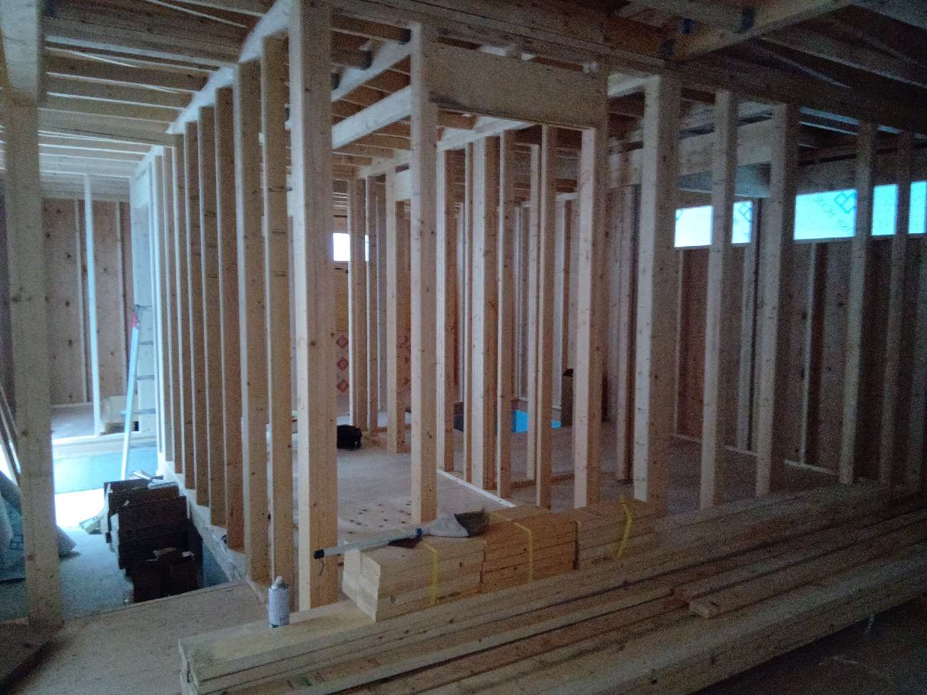 内部造作工事がはじまりました。サッシを取り付け、各所下地工事やフローリング工事へ進んでいきます。