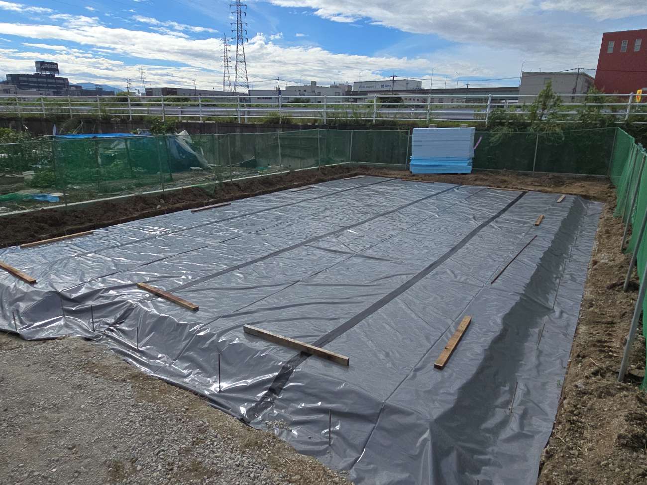 地盤の上にシロアリ対策と防湿を兼ねたターミダンシートを敷いています。