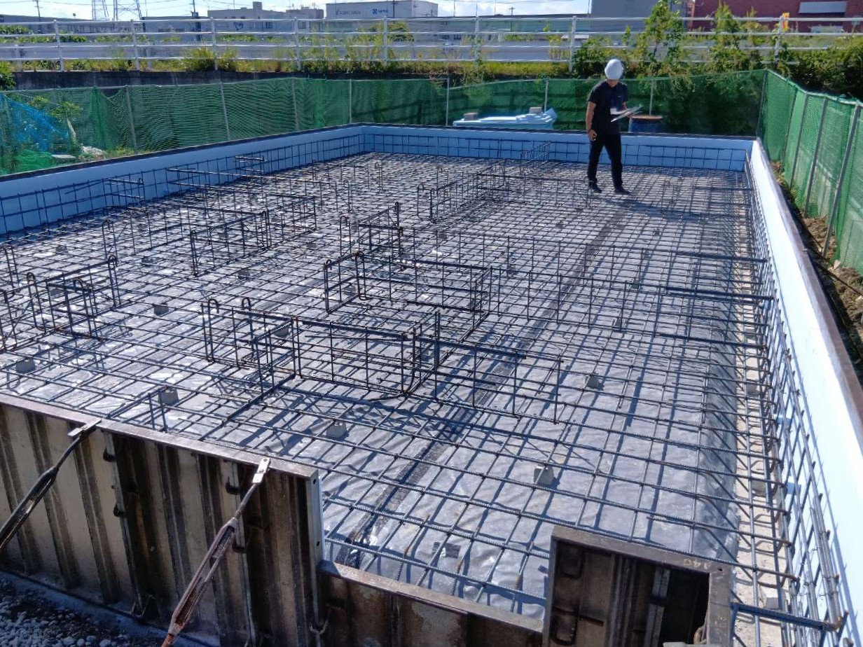 第三者機関である日本住宅保証検査機構(JIO)様の配筋検査を受けました。配筋は、13㎜異型鉄筋を20㎝間隔で組んでいます。