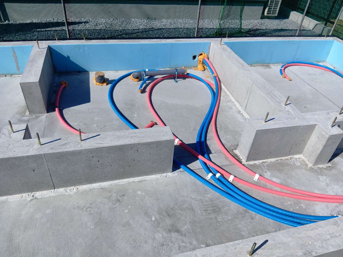 床下の設備配管が進んでいます。