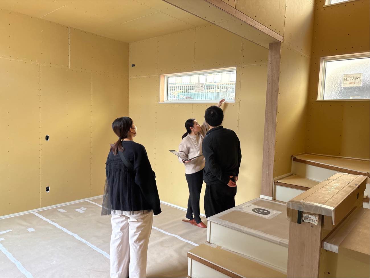 壁紙を貼る作業が進む中、現場にてお打合せをさせていただきました。