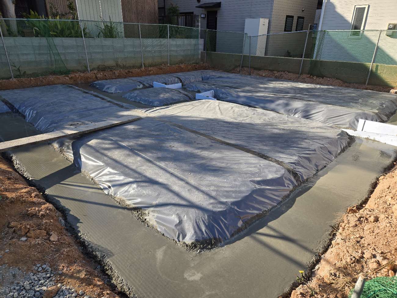 地盤の上にシロアリ対策と防湿を兼ねたターミダンシートを敷いています。
