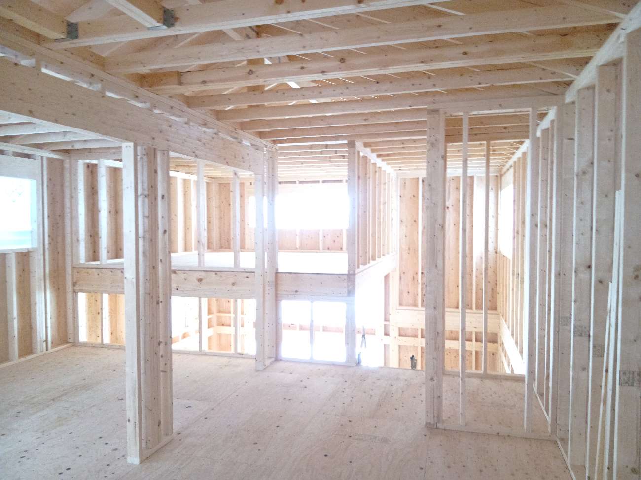 内部造作工事がはじまりました。サッシを取り付け、各所下地工事やフローリング工事へ進んでいきます。
