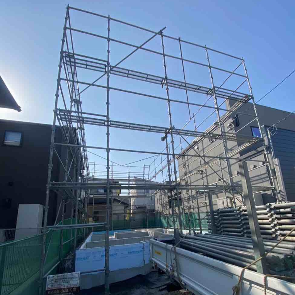躯体工事に取り掛かりました。基礎の上に土台材を敷き、28㎜の合板を敷き込んで専用の釘で止めていきます。この後いよいよ上棟です!