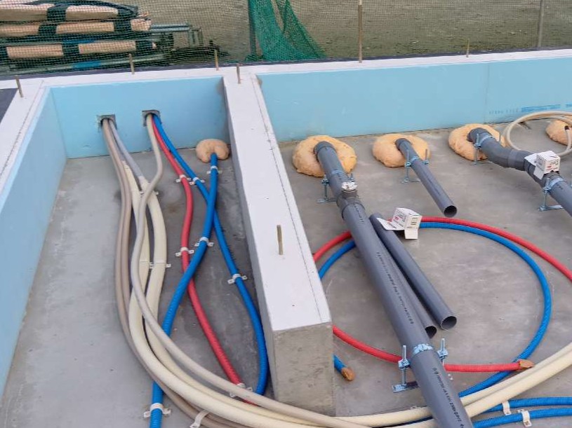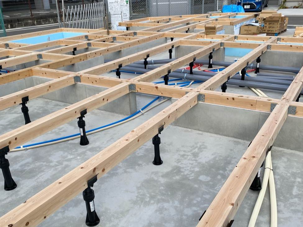 床下の設備配管が進んでいます。