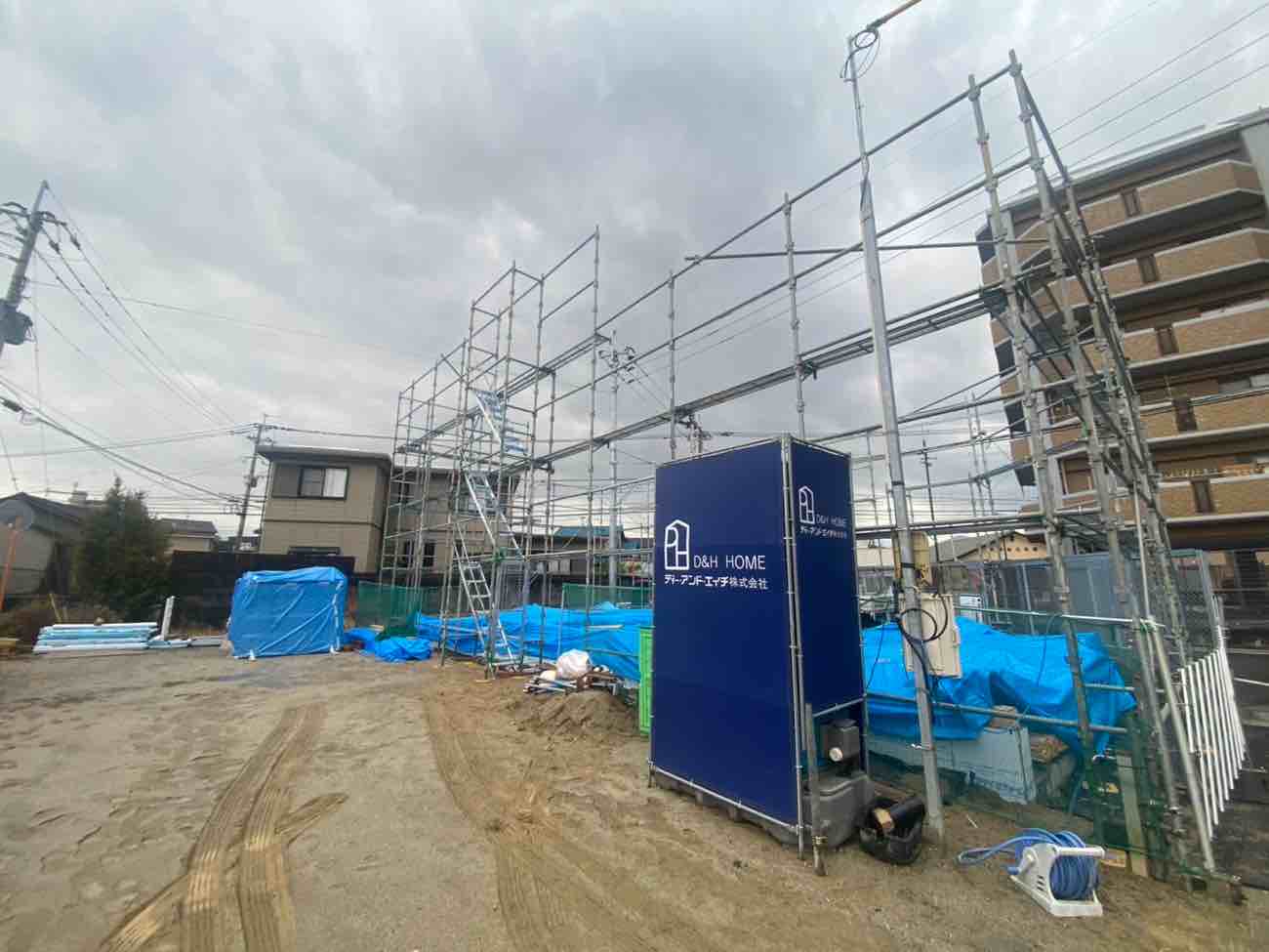 外部足場を組み上げました。