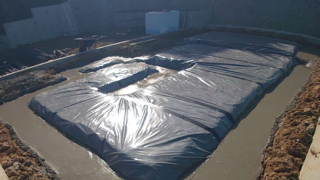 地盤の上にシロアリ対策と防湿を兼ねたターミダンシートを敷いています。