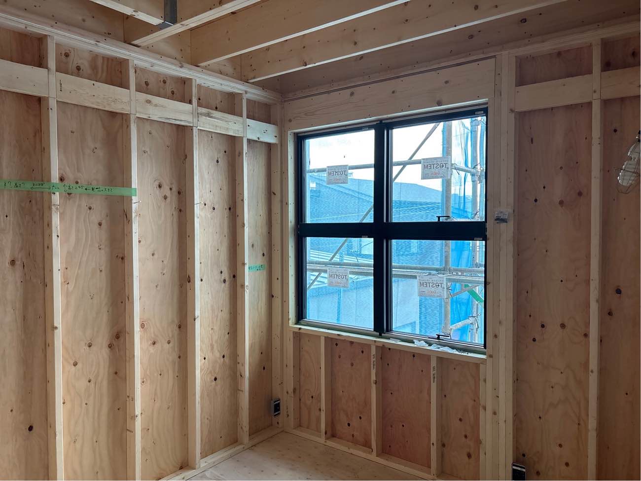躯体工事に取り掛かりました。基礎の上に土台材を敷き、28㎜の合板を敷き込んで専用の釘で止めていきます。この後いよいよ上棟です!
