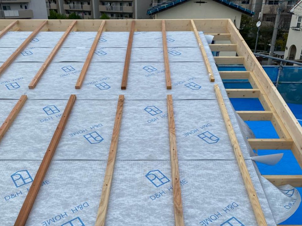 上棟作業が進んでいます。専属の大工さんが構造体を組み立てていきます。