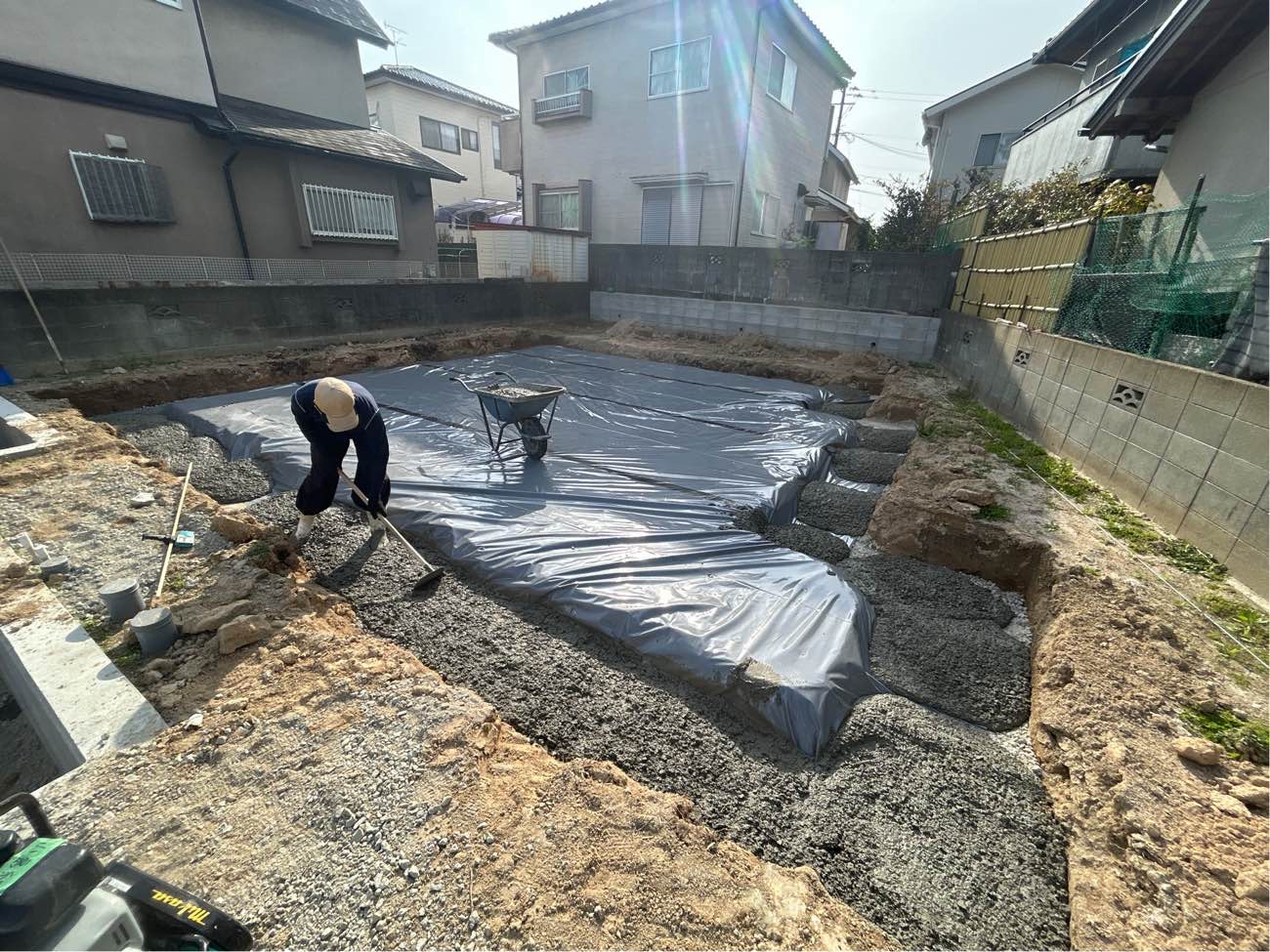地盤の上にシロアリ対策と防湿を兼ねたターミダンシートを敷いています。
