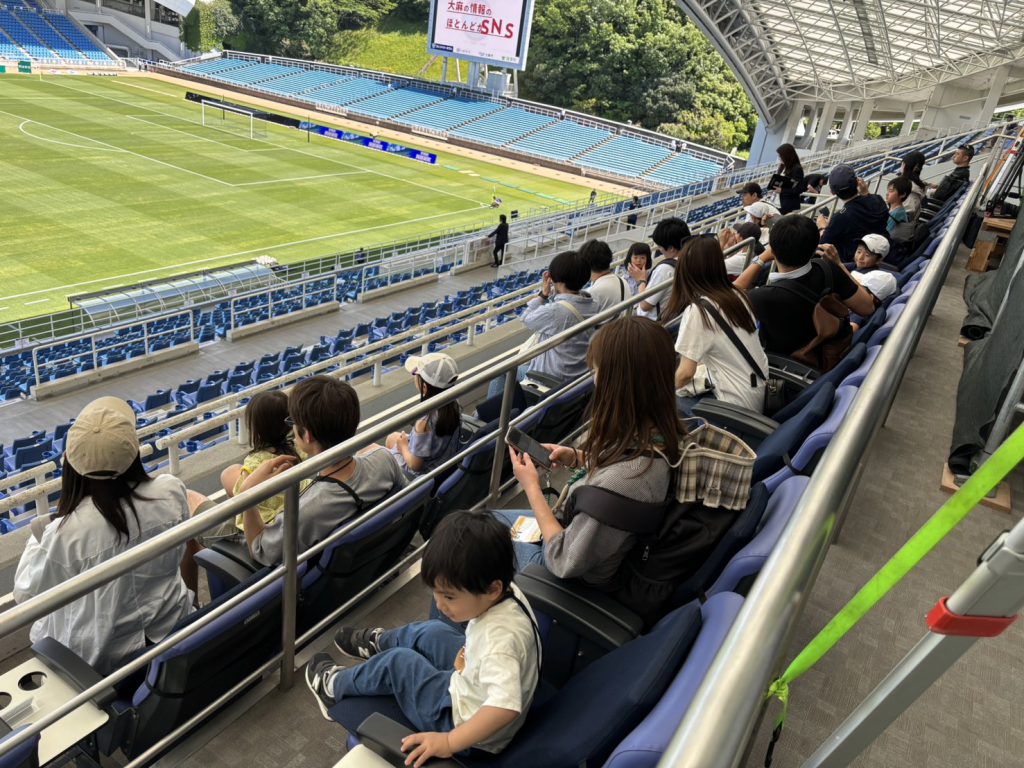 - 子どもたちにとっては初めてのスタジアム&サッカー観戦でした。興味を持てるか不安でしたが、楽しそうに参加していました。