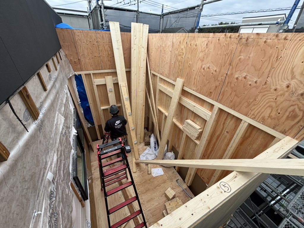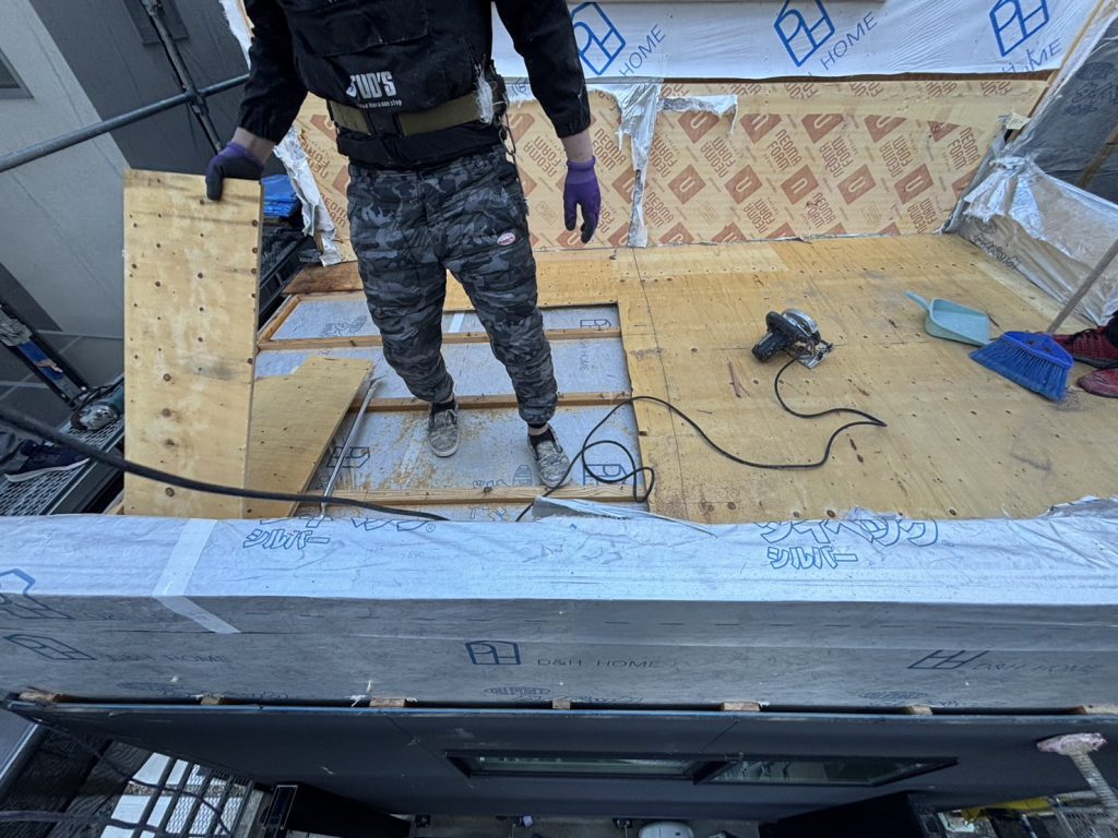 年明けから、O様邸にてバルコニーと下屋根部分の2か所をそれぞれ部屋にする増築工事を行っています。