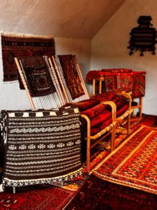 イランやアフガニスタンなどの遊牧民が、家族のために、一枚一枚手織りで織られたラグのことです。