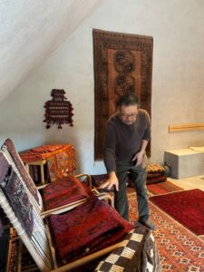 ラグの背景や織り手の文化、柄の意味を丁寧に伝えてくれた tribe 榊さん。
