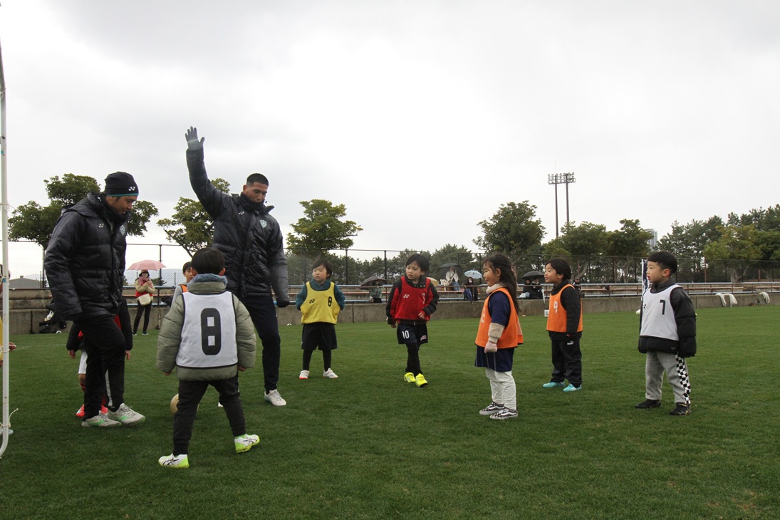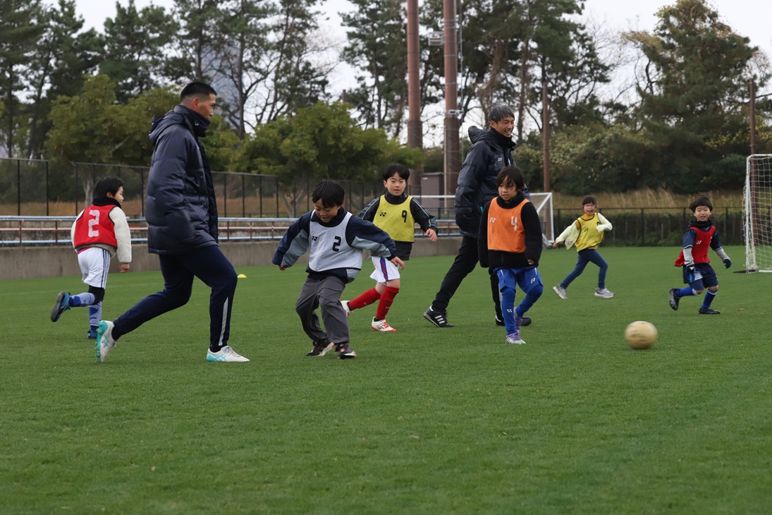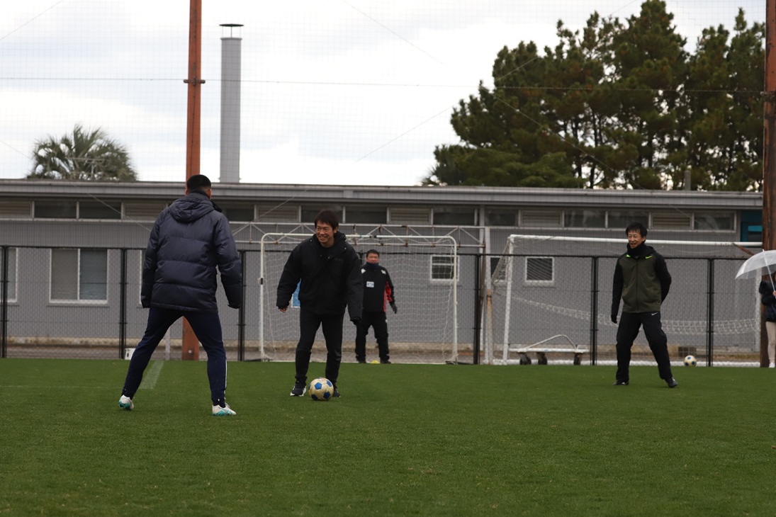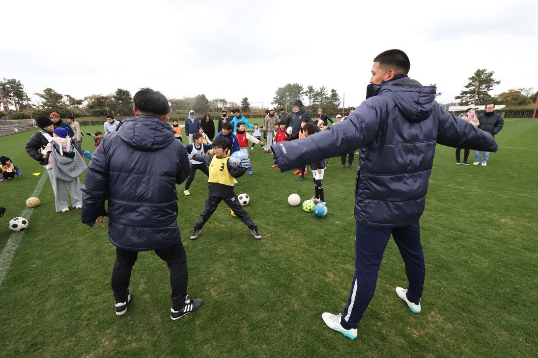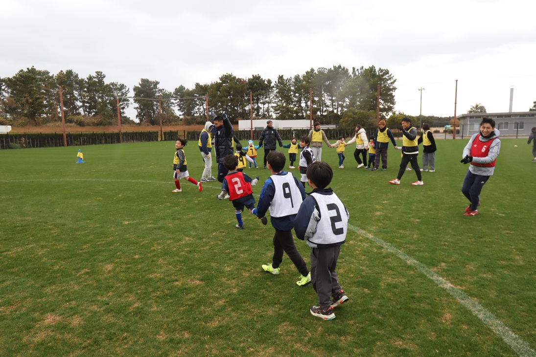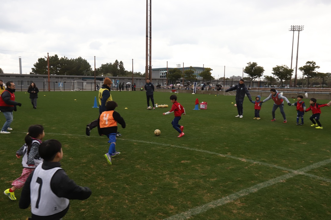 今回はより多くの方に楽しんでいただけるよう、選手が普段練習をしている広々としたピッチで行いました。