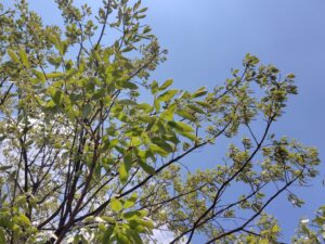 冬の間は葉が全て落ちたり、ついていても茶色いものだったりと色味がほとんどない庭でしたが、ここ数日で一気に緑が増えてきました。