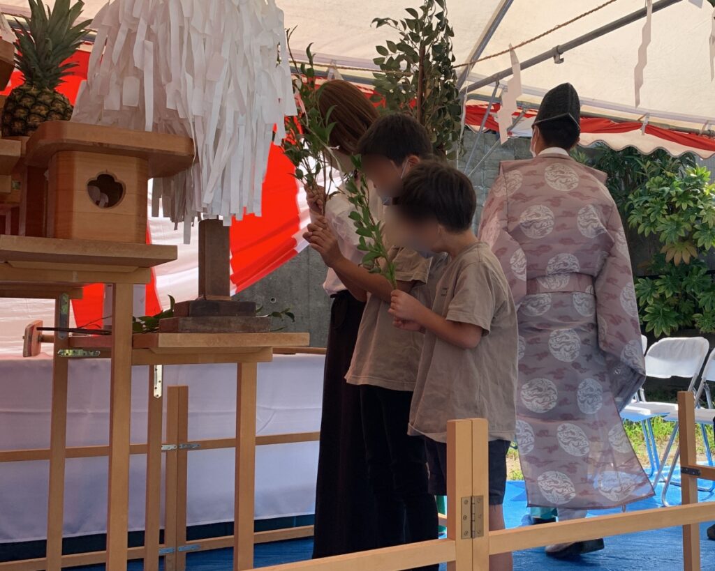 土地の神を祝って敷地を清め、これから始まる工事の安全と無事に完成することをお祈りする儀式です。