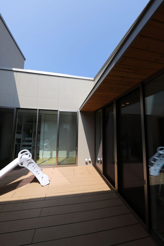 外の目が気にならない。でも中庭越しに家族の気配は感じられる、ロの字型のお家。