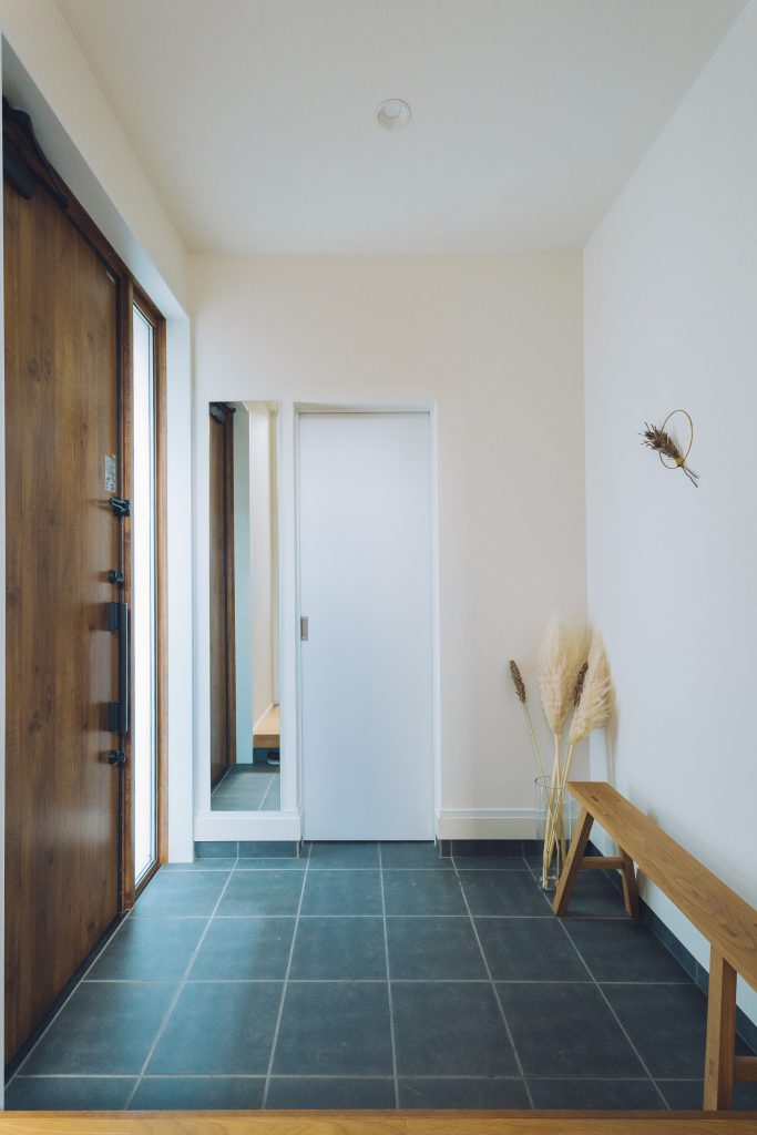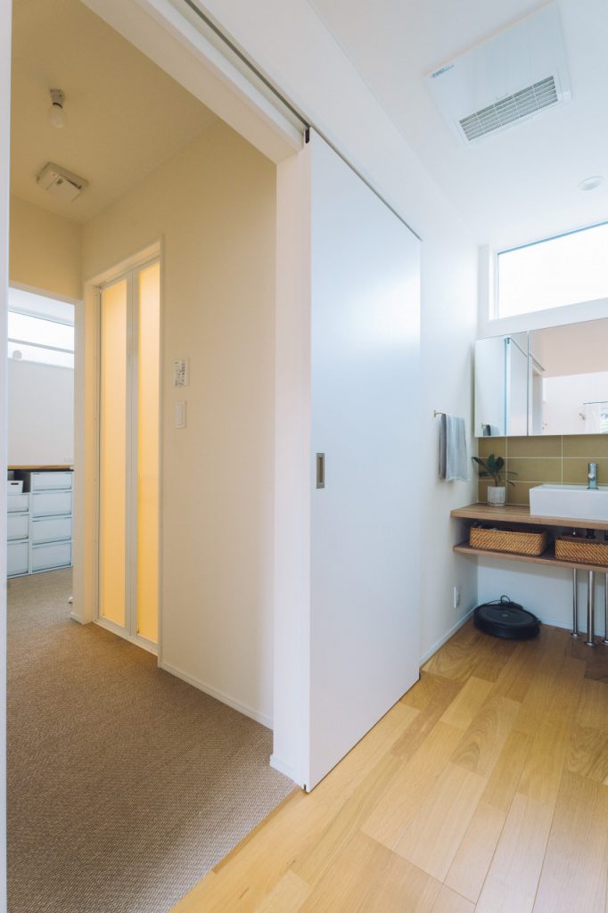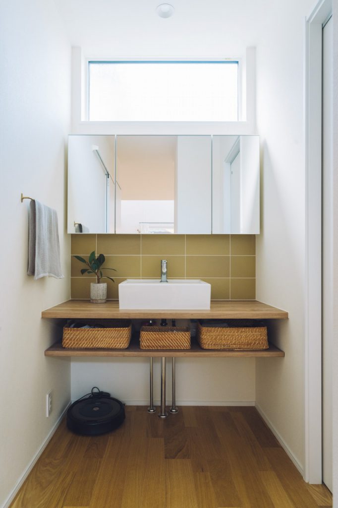 広さを確保したランドリールームには、洗濯物を畳んだりアイロンがけをしたりするのにぴったりなカウンターがあり、家事動線をコンパクトに納めています。